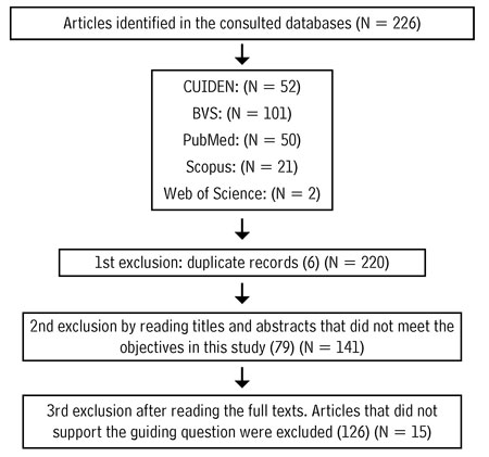 Thus, 226 articles were found, of which 15 were selected and comprised the established pre-inclusion criteria (Figure 1).